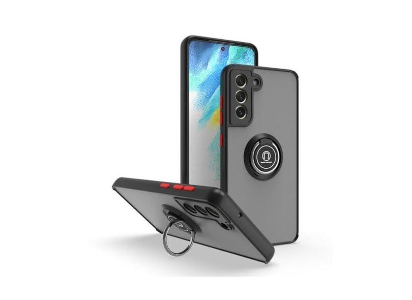 Capa de telefone anti-queda fosca com anel magnético para Samsung Galaxy S22 Ultra S21FE S20 S8 S9 S10 Plus Note 20 10 9 8 A03 capa de suporte, preto vermelho, para Samsung S20 FE