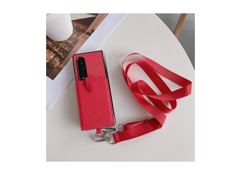 Capa de telefone carteira com cordão crossbody para Samsung Galaxy Z Fold 5 4 3 Fold5 Fold4 Fold3 Anel porta-cartão capa de couro, vermelha, para Galaxy Z Fold5