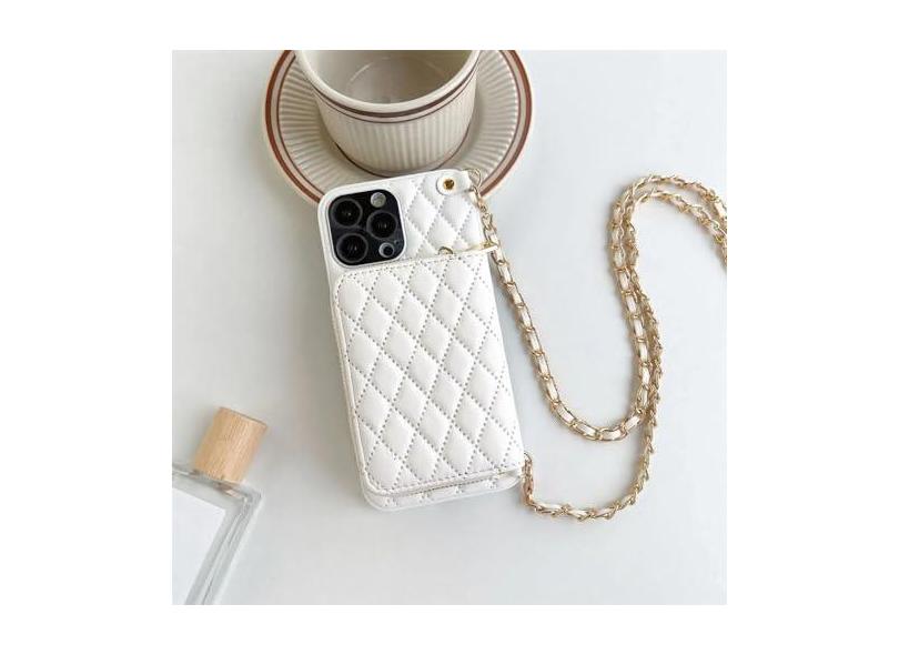 Capa de telefone com alça de cordão crossbody para iPhone 15 14 13 12 11 Pro Max Zipper Carteira porta-cartões com corrente capa de couro PU, branca, para iPhone 12 Pro