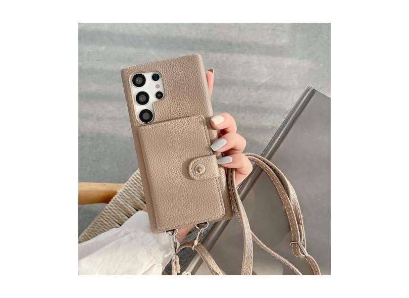 Capa de telefone com alça de ombro de couro de lichia da moda para Samsung S23 Ultra S20 S21 S22 Note 8 9 10 20 Capa carteira crossbody, marrom, Note 20 Ultra