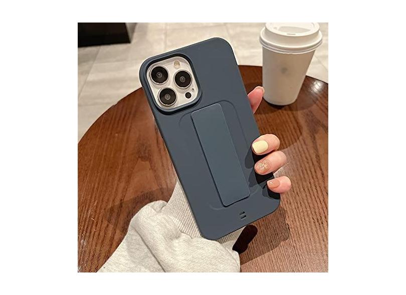 Capa de telefone com alça de pulso e suporte de mão para iPhone 13 12 11 14 Pro Max X XS Max XR 7 8 Plus Capa de silicone macio de cor sólida, marinho, para iPhone11ProMax