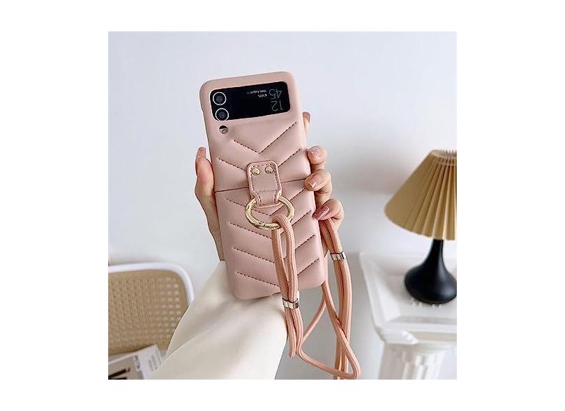 Capa de telefone com alça transversal ajustável de luxo para Samsung Galaxy Z Flip 4 3 Z Flip3 ZFlip4 5G capa de anel bonito capas V-line, rosa, para Z Flip 4