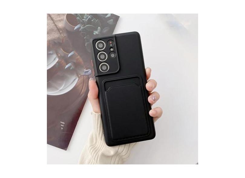 Capa de telefone com compartimento para cartão de carteira de silicone líquido para Samsung A32 4G 5G A12 A42 A52 A72 S21 Plus S20 FE Note 20 Capa traseira ultramacia, preta, para Samsung A32 5G