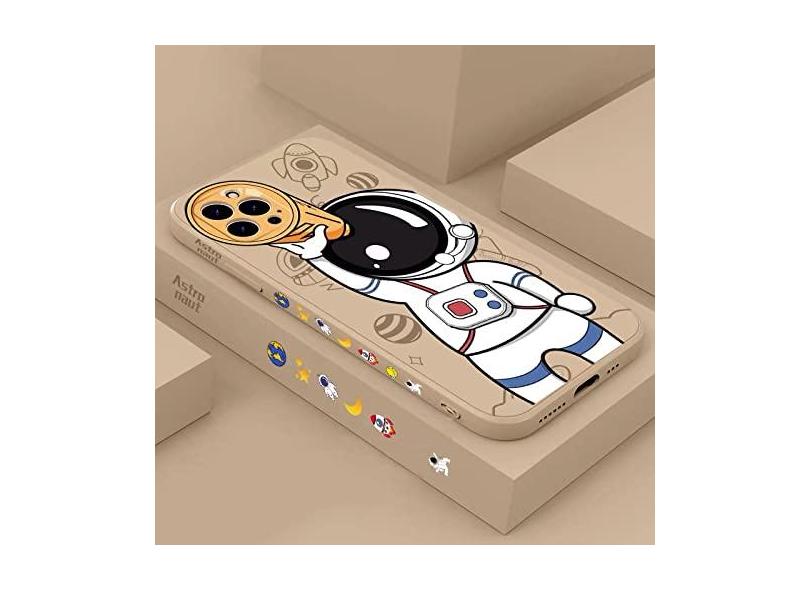 Capa de telefone com cordão de mão de astronauta bonito para iPhone 13 12 11 Pro Max XS Max XR X 8 7 Plus Silicone Líquido Amortecedor Macio Capa Traseira, K, Para iPhone X ou XS