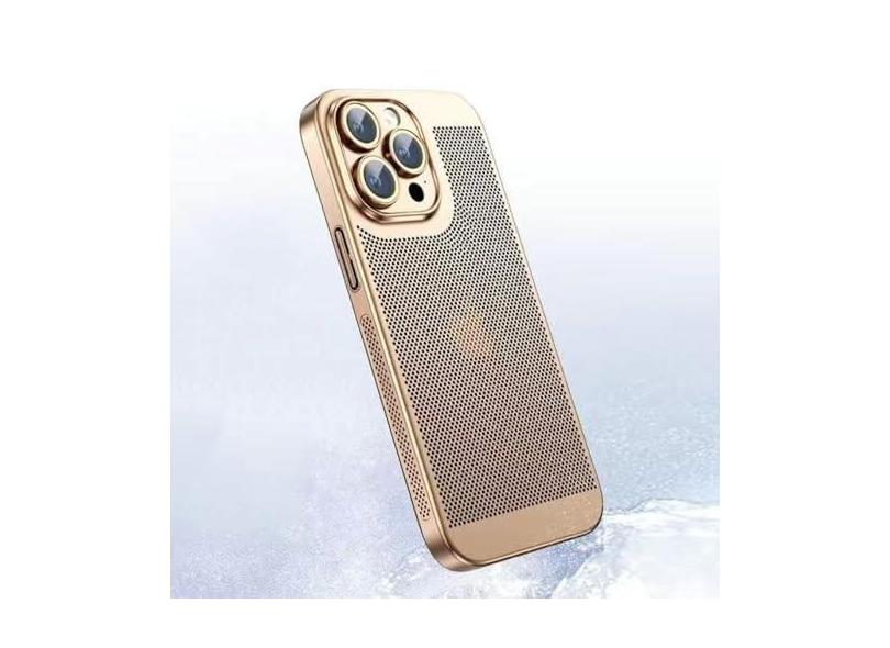 Capa de telefone com dissipação de calor para iphone 15 14 11 12 13 Pro Max 14Plus XS Max Mini capa borda galvanizada concha de malha de favo de mel, dourada, para iPhone 12 Mini