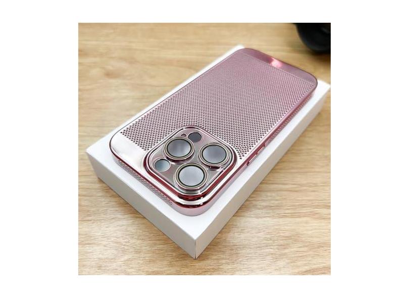 Capa de telefone com dissipação de calor respirável revestida para iPhone 15 14 13 12 11 Pro Max 7 8 Plus XR XSMax Capa galvanizada fina e dura, ouro rosa, para iPhone 15 Plus