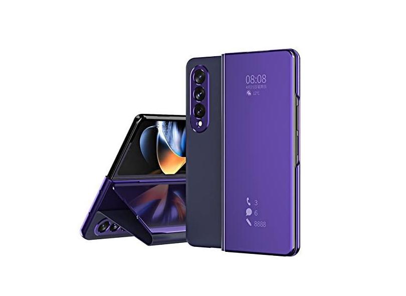 Capa de telefone com espelho Clear View para Samsung Galaxy Z Fold 4 3 2 5G Fold4 Fold3 Fold2 PU Couro Shell Capa de proteção total, azul roxo, para Galaxy Z Fold4 5G