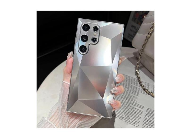 O menor preço encontrado no Brasil para Capa de telefone com padrão de diamante com revestimento holográfico brilhante para Samsung S24 Ultra S23 Plus S22 A73 A53 A34 A54 Capa à prova de choque, prata, para Samsung S23 atualmente é R$ 160,91.