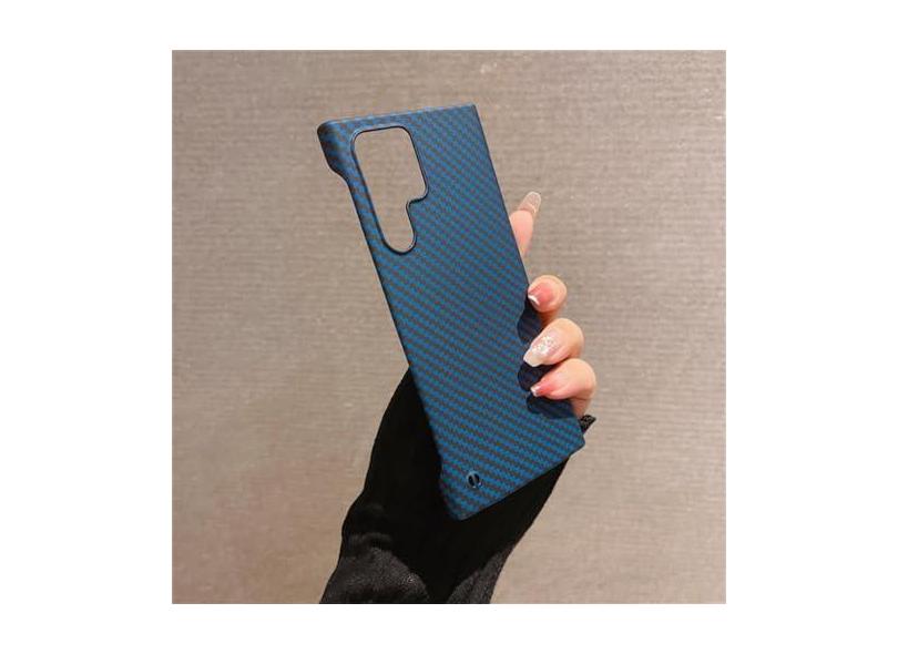 Capa de telefone com padrão de fibra de carbono sem moldura para Samsung Galaxy S23 S22 S21 Ultra Plus Note 20 10 Capa traseira fina à prova de choque, azul, para S22