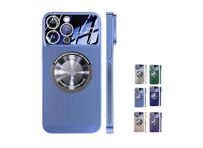 Capa de telefone com resfriamento de janela grande galvanizada, para 15 capas de resfriamento magnético /1026 (Color : Blue, Size : For iPhone12PRoMAX)