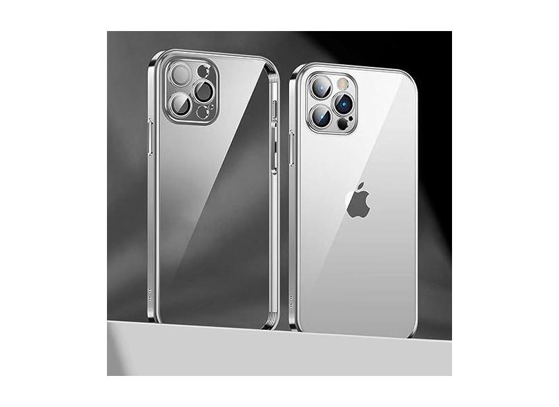 Capa de telefone com revestimento de lente para iPhone 14 11 12 13 Pro Max Mini XS XR 7 8 14 Plus SE 2020 Capa de proteção de câmera de luxo, prata, para iPhone 11