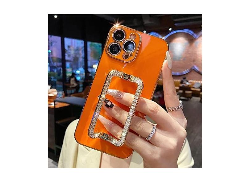 Capa de telefone com revestimento de ouro quadrado 3D para iphone 14 12 Pro Max Mini 11 13 Pro X XS XR 6 S 7 8 Plus SE Capa, L24A3, laranja, para iPhone 14