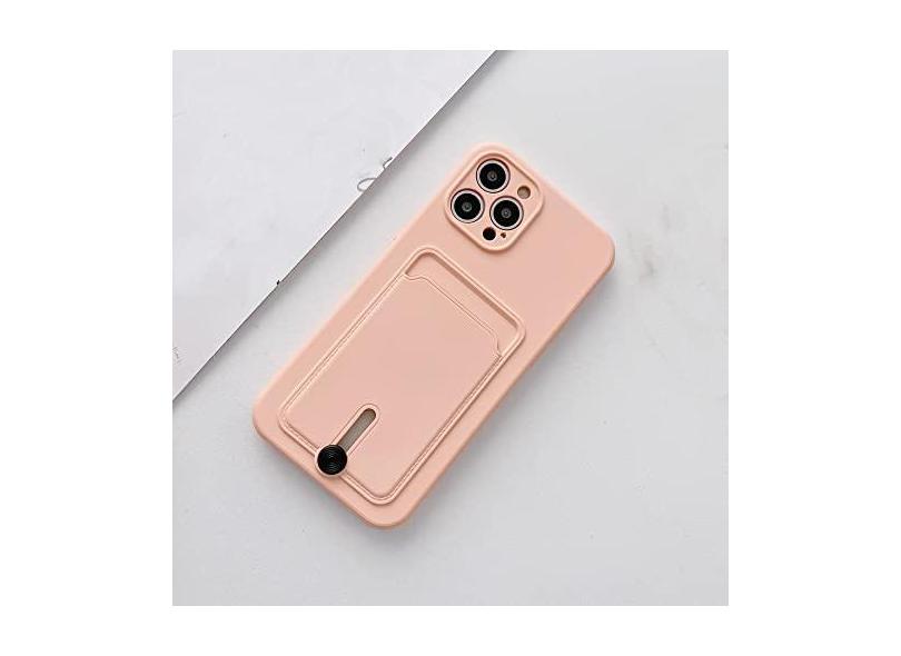 Capa de telefone com slot para cartão de carteira Candy Color para iPhone 12 11 Pro Max Mini 8 7 Plus Xr X Xs Max SE 2020 Capa de Silicone, Rosa, Para iPhone 12