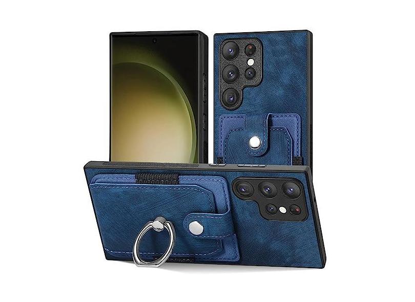 Capa de telefone com slot para cartão de carteira para Samsung Galaxy S21 S20 FE S23 S21 Ultra Plus magnético suporte para anel de dedo capa de couro, azul, para Galaxy S23