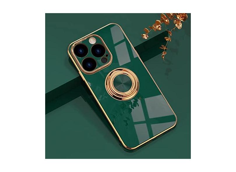 Capa de telefone com suporte de anel de silicone para iPhone 11 12 13 14 Pro Max Mini X XR 8 Plus SE com suporte giratório capa à prova de choque, verde escuro, para iPhone 14