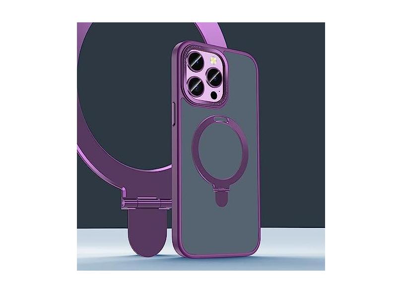Capa de telefone com suporte de anel magnético para iPhone 14 13 12 Pro Max Cover Carregamento sem fio Celular de metal à prova de choque, roxo escuro, para iPhone 14