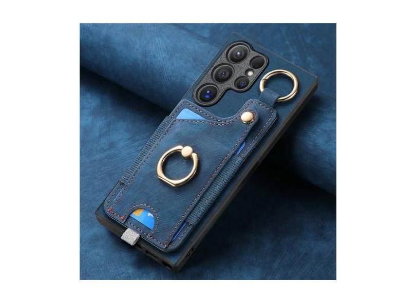 Capa de telefone com suporte de anel para Samsung Galaxy S21 S20 FE S24 S23 S22 Ultra S10 Plus S9 S8 Capa magnética de couro com compartimento para cartão, azul, para Galaxy S23 Ultra