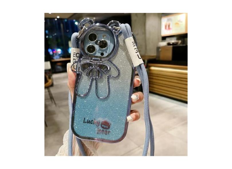 Capa de telefone com suporte de lente brilhante para iPhone 15 14 13 12 11 Pro Max XR 7 SE Capa de corda portátil crossbody, azul gradiente, para iPhone X ou XS