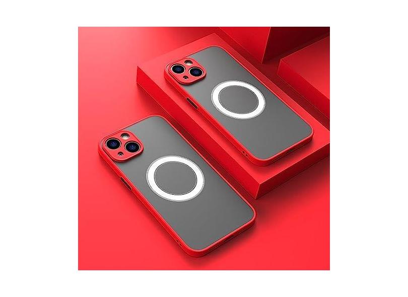 Capa de telefone de carga magnética sem fio de luxo para iPhone 14 13 11 12 Pro Max Plus X XR XS Capa fosca blindada à prova de choque, vermelha, para iPhone 14 ProMax