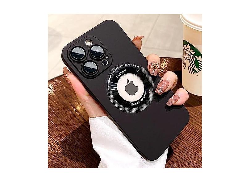 Capa de telefone de carga sem fio de luxo para iphone 14 13 12 11 pro max plus amortecedor magnético fosco duro pc capa à prova de choque, preto, para iphone 12