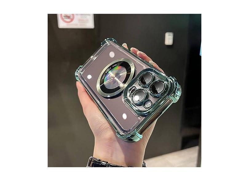 Capa de telefone de carregamento sem fio de luxo para iPhone 11 12 13 14 Pro Max Plus Capa protetora magnética transparente galvanizada, verde, para iphone 13Pro Max