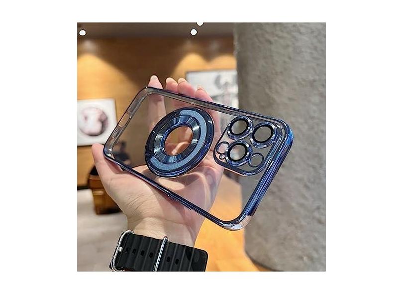 Capa de telefone de carregamento sem fio de luxo para iPhone 11 12 13 14 Pro Max Plus Suporte de anel magnético Capa transparente, azul celeste, para iPhone 12Pro Max