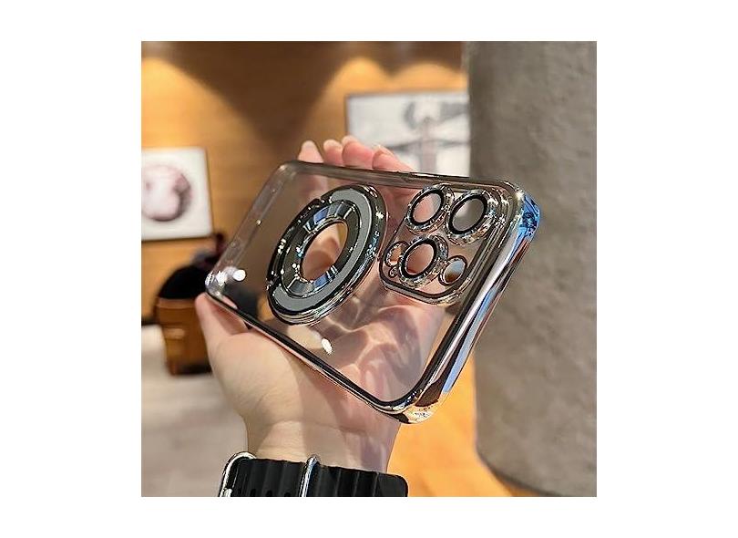 Capa de telefone de carregamento sem fio de luxo para iphone 11 12 13 14 pro max plus suporte de anel magnético capa transparente, prata, para iphone 13