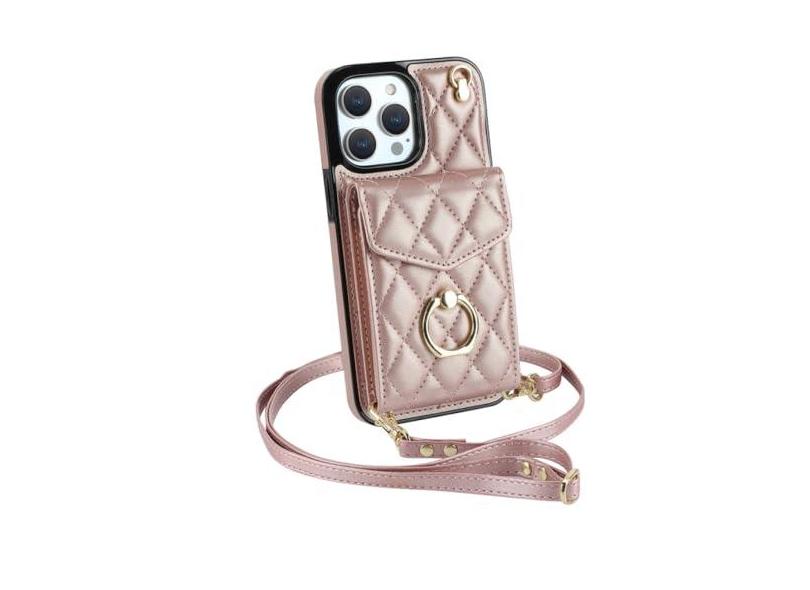 Capa de telefone de couro com alça de pulso crossbody para iPhone 13 12 Mini 15 14 11 Pro XS Max XR X 7 8 Plus Carteira com capa de suporte de cartão, ouro rosa, para iPhone 12 Mini
