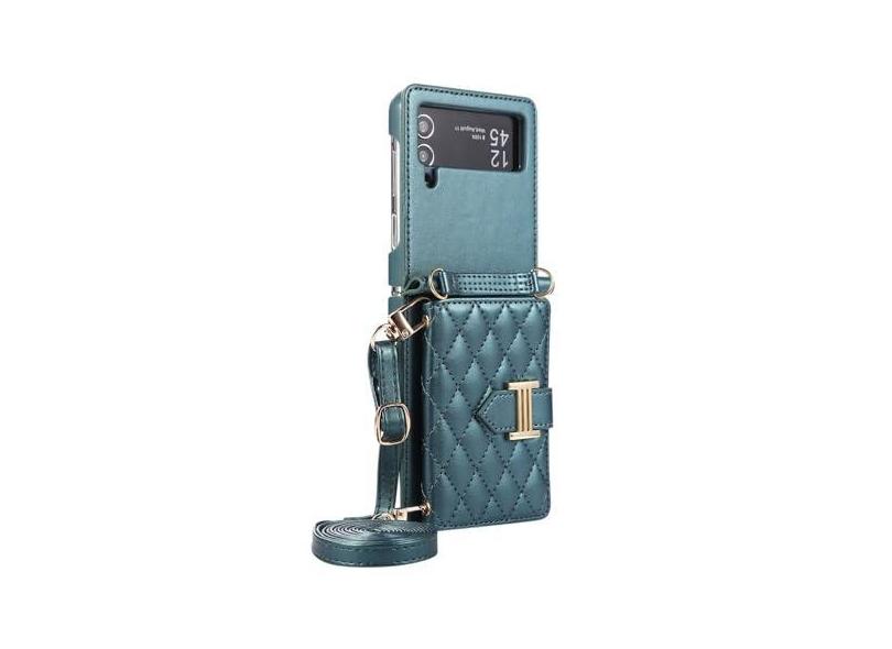 Capa de telefone de couro crossbody Capa de telefone para Samsung Galaxy Z Flip 5 4 3 Flip5 Flip4 Flip3 5G Carteira com suporte para cartão, verde escuro, para Galaxy Z Flip4