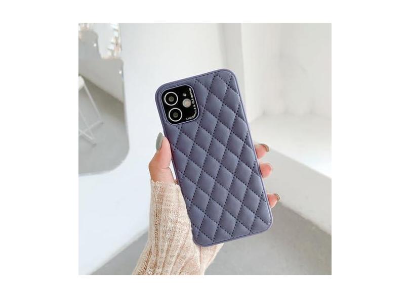 Capa de telefone de couro duro de treliça de proteção de pára-choques de luxo para iPhone 13 12 Pro Max 7 8 Plus X XS XR 11 SE 2022 Capa de lente de metal, cinza escuro, para iPhone 8