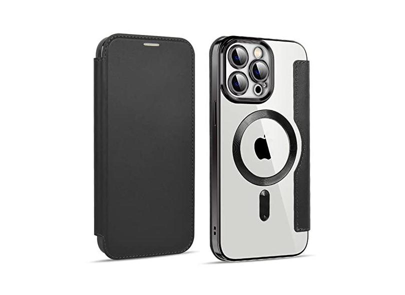 Capa de telefone de couro flip de carregamento sem fio para iPhone 15 14 Pro Max 12 13Pro 11 Pro Max Capa transparente à prova de choque para cartão de visita, T1, para iphone 13Pro