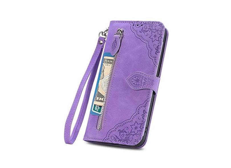 Capa de telefone de couro flip para Samsung A53 A73 A33 A23 A13 A14 A34 A54 A52 A72 A51 A71 Carteira com zíper capa para vários cartões, roxo, para SamsungA50 A50S A30S