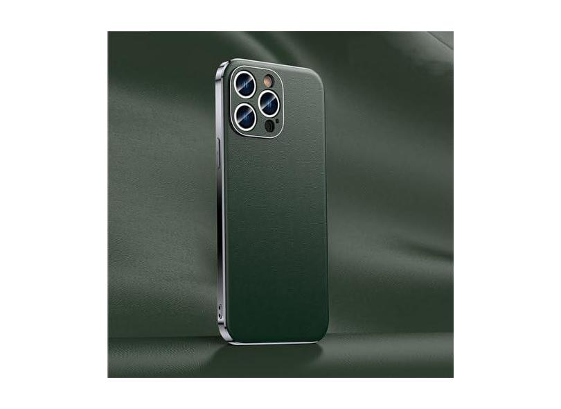 Capa de telefone de couro para iPhone 14 12 11 13 15 Pro Max 15Pro 14Pro Chapeamento de luxo com proteção total de lente capa traseira, verde (A006), para iPhone 11 Pro
