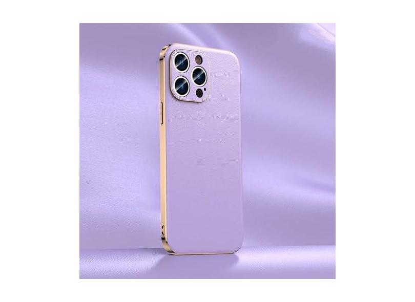 Capa de telefone de couro para iPhone 14 12 11 13 15 Pro Max 15Pro 14Pro Chapeamento de proteção de lente completa capa traseira, roxo (A006), para iPhone 13Pro Max