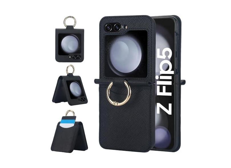 Capa de telefone de couro PU com bolso de cartão com padrão cruzado para Samsung Galaxy Z Flip 3 4 5 6 Capa com suporte de anel, preta, para Z Flip 6