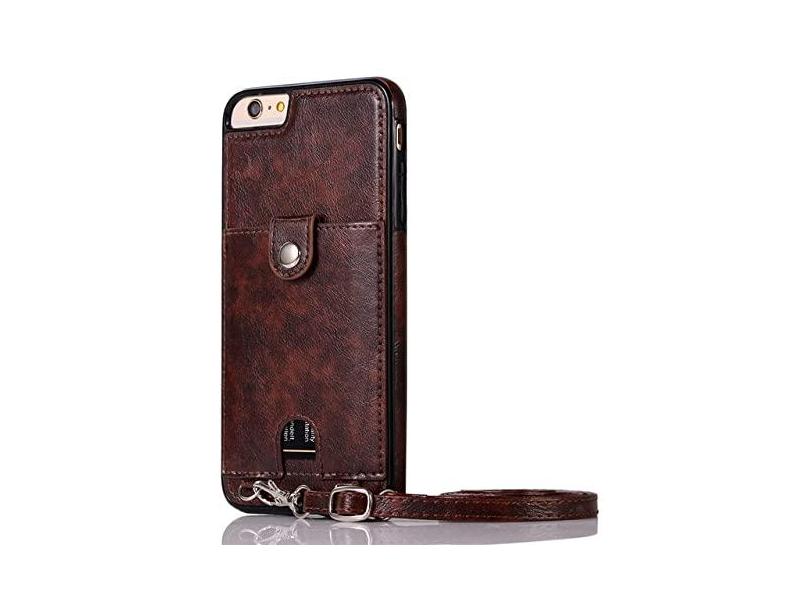 Capa de telefone de couro PU para iPhone SE 2020 11 12 Pro Max X Xs Max XR 8 7 6 6S Capa de cartão carteira para Samsung S20 S10 Capa com alça, marrom, para iPhone XR