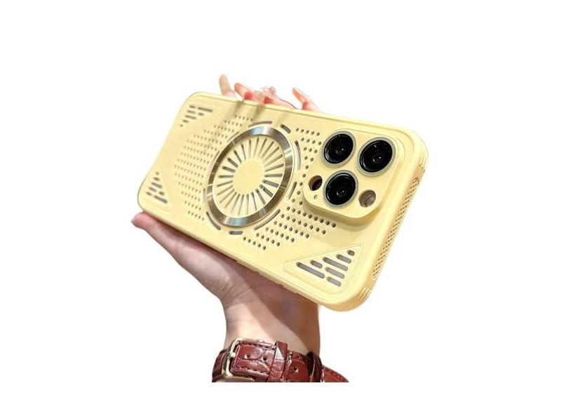 Capa de telefone de dissipação de calor magnética para iphone 15 14 13 12 pro max doce cor respirável capa de resfriamento, amarelo, para iphone 13
