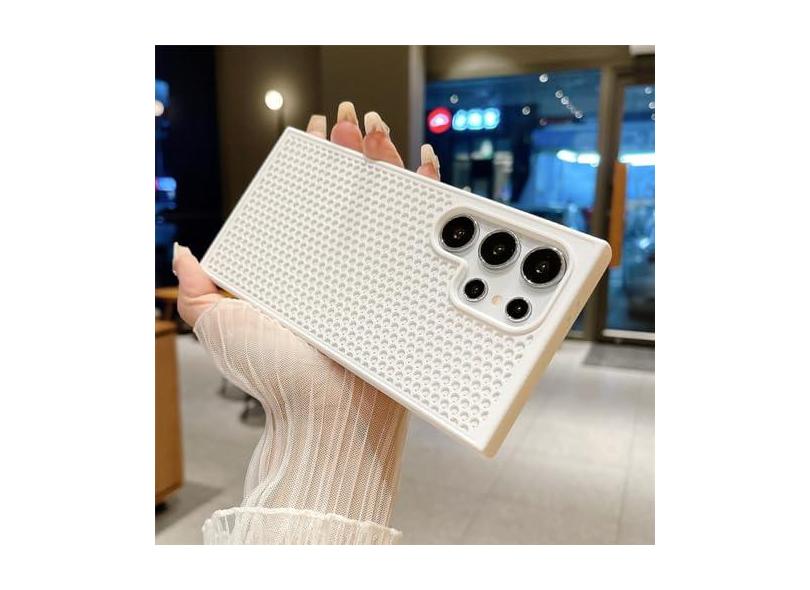 Capa de telefone de malha de dissipação de calor em favo de mel para Samsung S24 S23 FE S22 Ultra Plus com resfriamento respirável à prova de choque capa de cor sólida, branca, para Samsung S24Ultra