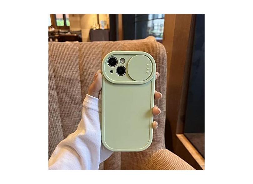 Capa de telefone de proteção para câmera deslizante para iPhone 14 13 12 11 Pro Max XS bonito oval cor sólida silicone líquido capa macia, verde, para iPhone 12Pro Max