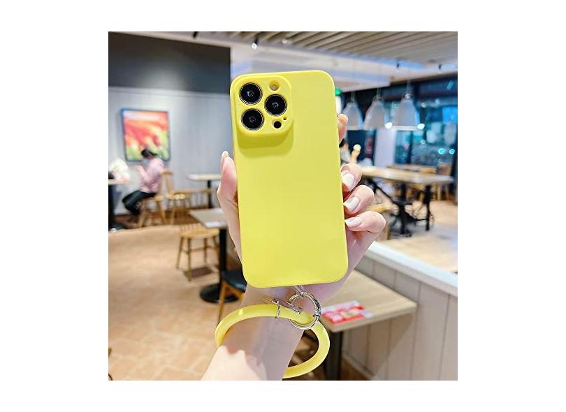 Capa de telefone de pulseira de pulso de cor doce para iPhone 13 12 11 Pro Max Mini XR XS X 8 7 Plus 6 6S 5 SE 2022 Capa de silicone fosca macia, amarela, para iPhone 13 Pro