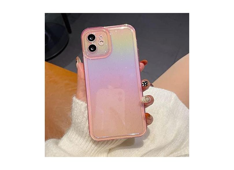 Capa de telefone de silicone arco-íris macio para iPhone 11 12 13 14 Pro Max X Xs Max XR Tampa traseira transparente, rosa, para iPhone 12Pro Max