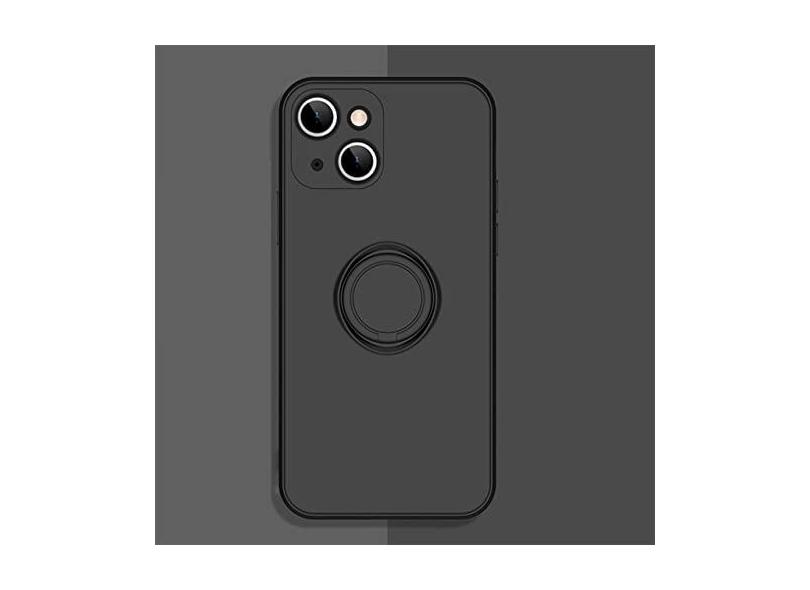 Capa de telefone de silicone líquido macio para iPhone 11 12 13 Pro Max 13Mini XS Max X XR 7 8 Plus SE 2020 Stand Ring Capa à prova de choque, preta, para iPhone 8