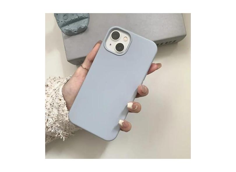 Capa de telefone de silicone líquido roxo escuro para iPhone 15 Pro Max 14 13 12 11 Pro Max XR XS X 15ProMax Capa protetora completa, cinza azul, para iPhone 13 Pro
