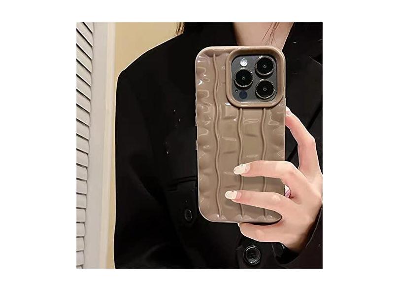Capa de telefone de silicone macio com textura de ondulação de água colorida 3D para iPhone 14 11 12 13 Pro Max XS X XR 6 7 8 Plus SE Capa quadrada, cáqui, para iPhone 11