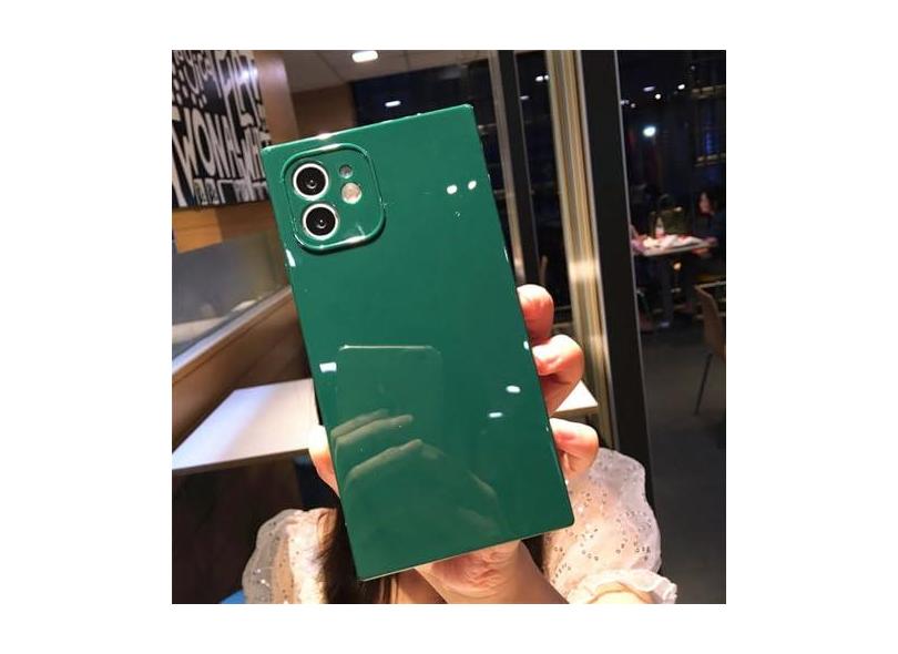 Capa de telefone de silicone quadrada macia para iPhone 11 12 13 14 Pro Max XS X XR Max 7 8 Plus Mini SE 2020 Capa traseira amortecedora, verde, para iphone 12