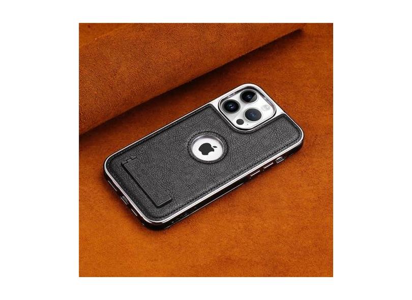 Capa de telefone dobrável invisível com moldura galvanizada para iPhone 15 14 Plus 13 12 11 Pro Max Capa de couro PU ultrafina, preta, para iPhone 14 Pro