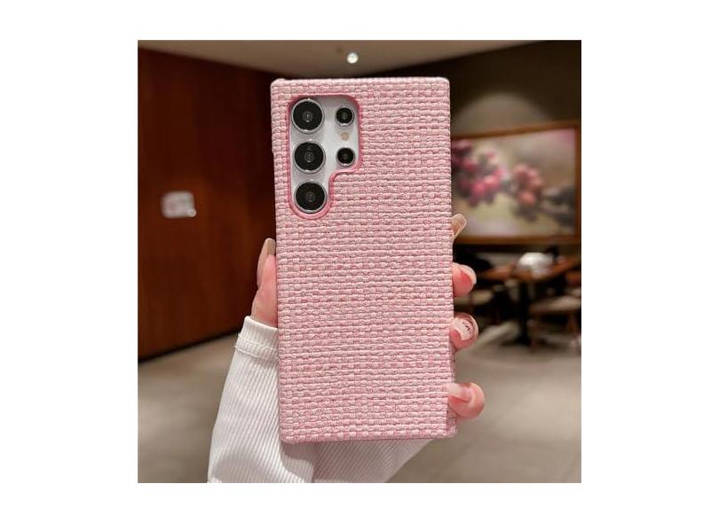 Capa de telefone em tecido de couro PU com padrão tecido colorido para Samsung S24 Ultra S22 S23 Plus capa protetora fosca à prova de choque, rosa, para Samsung S22Ultra