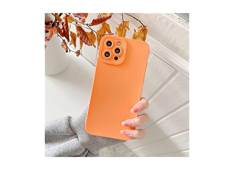 Capa de telefone fluorescente de cor sólida de silicone macio para iPhone 13 12 11 Pro XS Max 7 8 Plus X XR SE 2 Capa de proteção de câmera, laranja, para iPhone 13Pro Max
