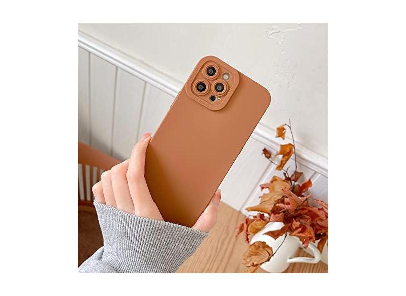 Capa de telefone fluorescente de silicone macio de cor sólida para iPhone 13 12 11 Pro XS Max 7 8 Plus X XR SE 2 Capa de proteção para câmera, marrom, para iPhone 12