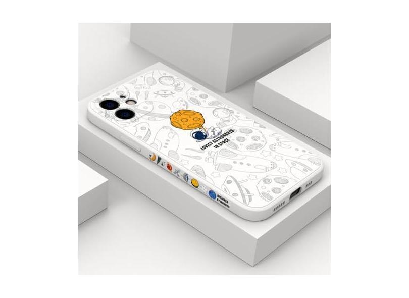 Capa de telefone fofa de astronauta dos desenhos animados para iPhone 15 Pro Max 11 12 13 14 Pro Max XS XR X 8 7 Plus Capa macia de silicone líquido, E, para iphone 14 Plus
